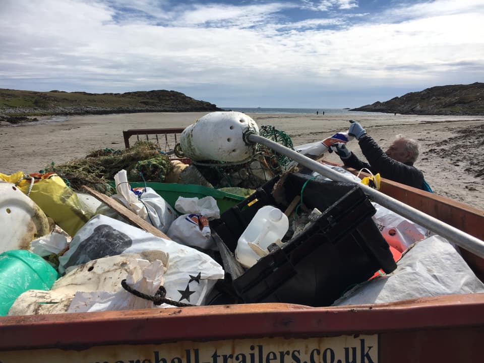 ‘Beach Clean and Barbecue’ – the Sunday afternoon saw a final gathering of around 50 helpers on the beach at Gortan to carry out some ‘coastal habitat management’ – or in other words: plastic litter clearing from the strandline. A huge volume of washed-up rubbish was gathered into a big trailer (while a pair of ringed plovers looked on with gratitude) and we were all rewarded for our efforts with a barbecue, expertly overseen by Tim Beighton.