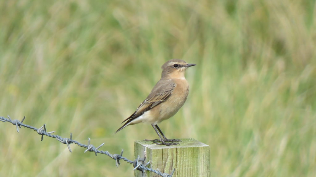 A flash of white rump as a Wheatear hurried away reminded us that its name derives from the old English ‘white-arse’.
