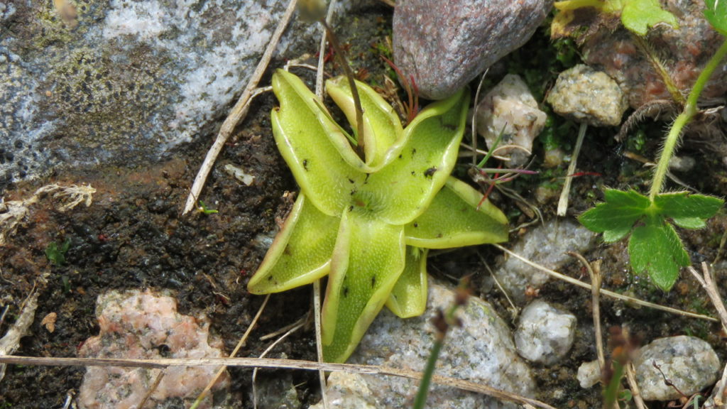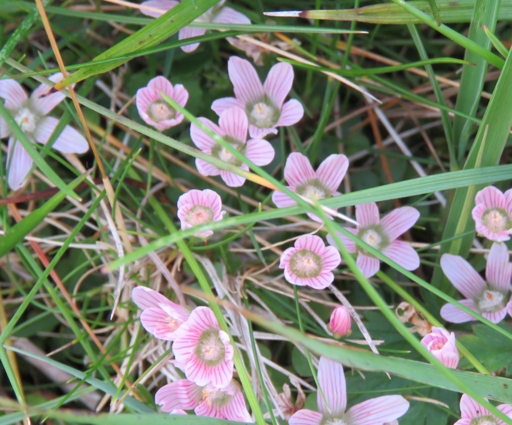 We saw lots of interesting plants, including: the carnivorous Butterwort, a yellow starfish of a plant that traps flies and other insects on its sticky leaves; the beautiful Field Gentian; the yellow-flowered Tormentil; the delicate pencilled pink flowers of the Bog Pimpernel; and the ubiquitous Devil’s-bit Scabious.
