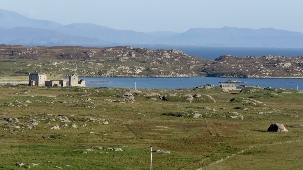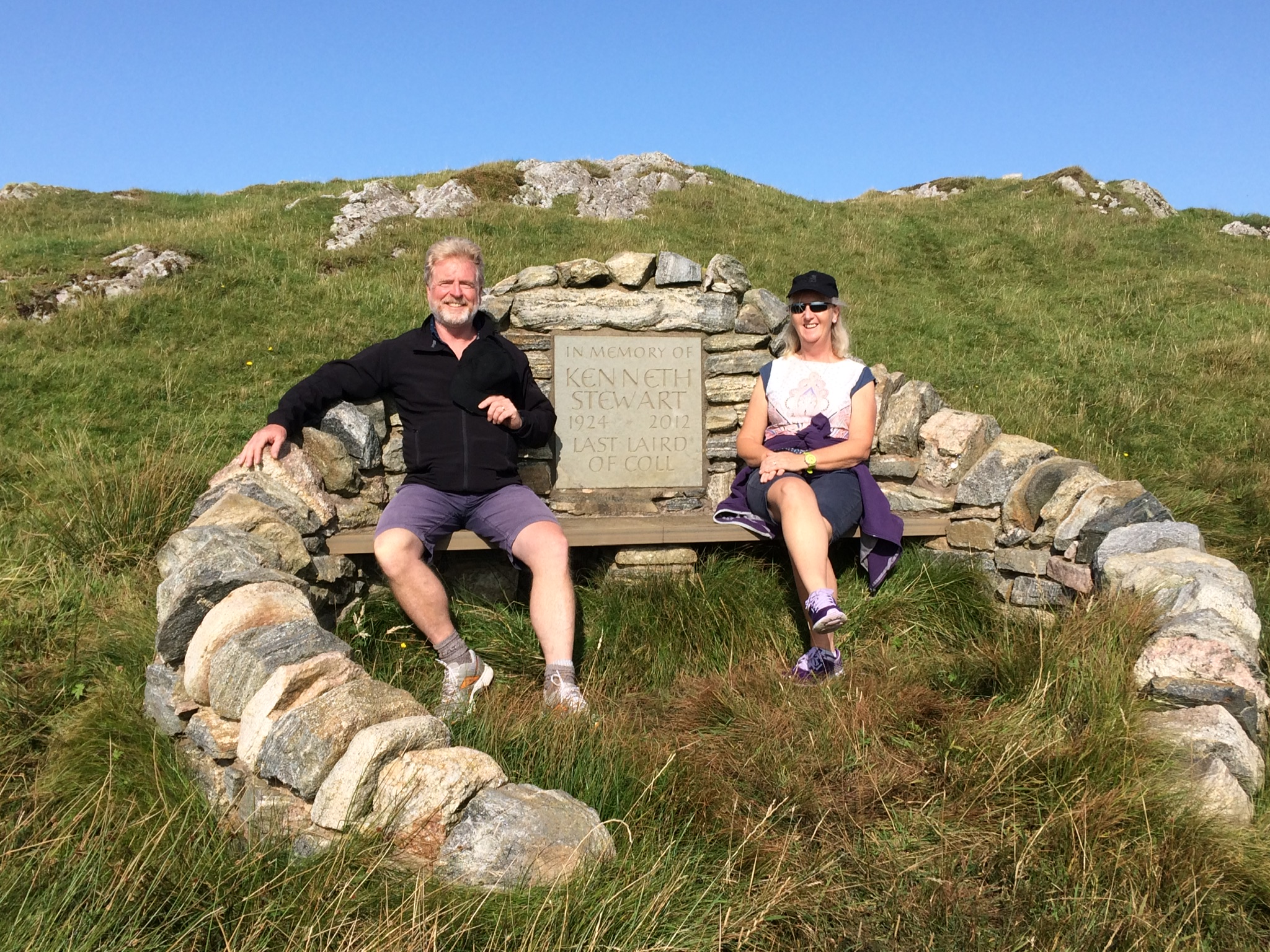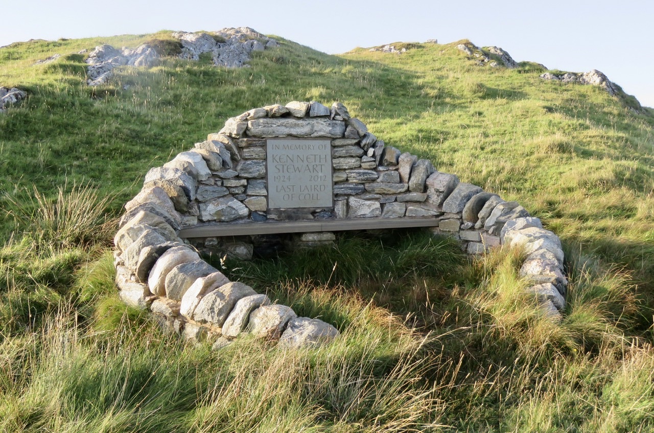 Finally we ascended to the Last Laird’s Lookout on the neighbouring Ben Feall. Built in 2012 to mark the death of the last Laird of Coll, Kenneth Stewart, this sheltered seat commands a magnificent view across the island to the castles at Breachacha.
