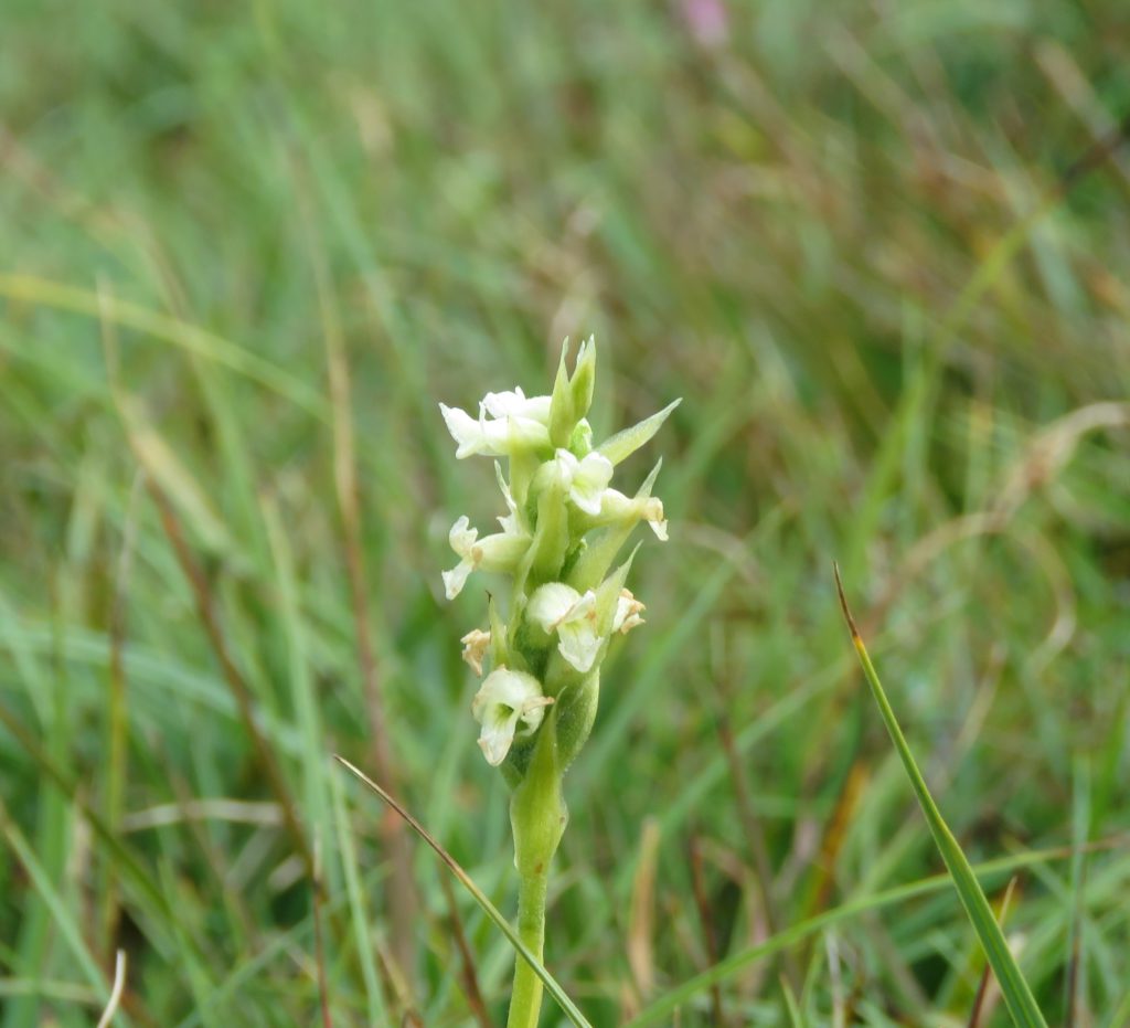 The next couple of species are not really restricted to the moorland and bog. The Northern Marsh Orchid is the least abundant of the marsh/spotted orchid group here on Coll. It likes having its feet wet, be it on a soggy moorland flush or a low-lying dune-slack. We find this one tricky to pick out, especially in the dunes when it’s surrounded by other marsh orchids (with which it readily hybridises). It’s usually got a deep-purple flower, with distinctive, kite-shaped side-lobes (when you put it like that, I don’t know why we struggle to pick it out!) The spike is densely-flowered and has an odd flat top, like it has been nipped off.