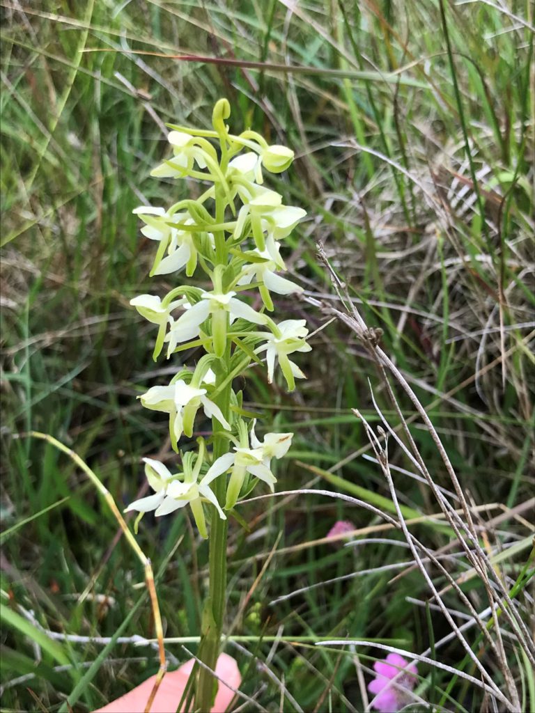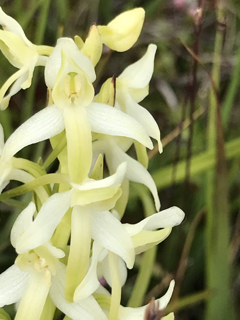The last orchid we’re going to mention is Coll’s second most famous resident (after Mairi Hedderwick, obviously!) The Irish Lady’s-tresses was first reported from Coll in the 1930s and its population here (spread over 30 sites) is probably the largest in Britain. It is properly a North American species which only occurs (on this side of the Atlantic) very locally in Ireland and on the Hebridean coast. It has a very different appearance to the other orchids mentioned here – it’s a small inconspicuous plant with grass-like leaves and the tubular white flowers spiral up the stem. They also appear much later than the others – typically during August and September. It’s appearance can be unpredictable: this year (2022), we struggled to find them in the places we found them last year, but did find them in several new locations.